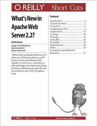 What's New in Apache Web Server 2.2? shows you all the new features you'll know to set up and administer the Apache 2.2 web server. Learn how to take advantage of its improved caching, proxying, authentication, and other improvements in your Web 2.0 applications.