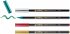 Das Set enthält 4 edding 1340 metallic Pinselstifte in den Farben gold, silber, rot-metallic und grün-metallic.