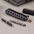 Stiftemäppchen aus hochwertigem Polyestergewebe (recycled PET) mit farbigem Innenfutter und einem runden goldenen Reißverschlussanhänger. Größe 19 x 6 x 4 cm, Gewicht 18 g.