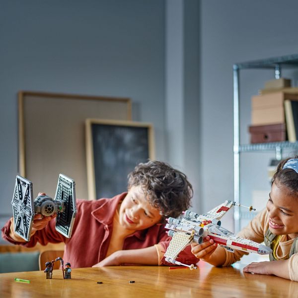 Das Set beinhaltet einen „TIE-Wing“ und einen „X-Fighter“. Beide Modelle haben ein aufklappbares Cockpit für eine LEGO Minifigur und 2 Shooter mit Federmechanismus. Nimm einfach die Sicherungsstifte heraus, um die Flügel vom Rumpf des einen Bauspielzeugs zu lösen und an dem jeweils anderen Modell zu montieren und so den legendären TIE Fighter und den berühmten X-Wing zu bauen. Die Flügel des „TIE-Wings“ und des „X-Fighters“ kann man in den Flug- oder Angriffsmodus schwenken. Und am Modell des X-Wings lässt sich das Fahrwerk einziehen.